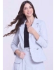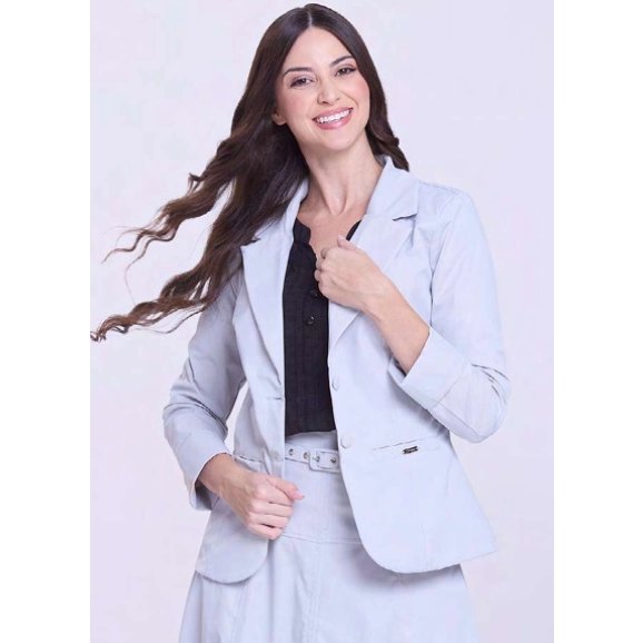 Blazer em tecido alfaiataria, decote com gola, ombreiras internas, fechamento frontal por botão encapado, mangas longas e bolsos falsos. Composição: 100% poliester