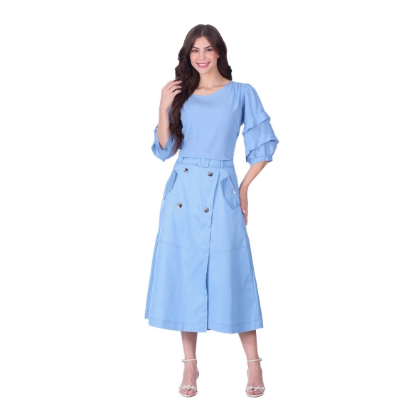 redondo, mangas com babados e punho
