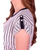 listrada e moletinho leve liso, decote