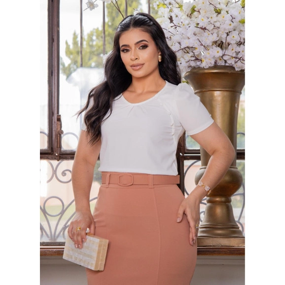 Blusa Andréia Em Crepe Pele de Pêssego Off White Maria Amore