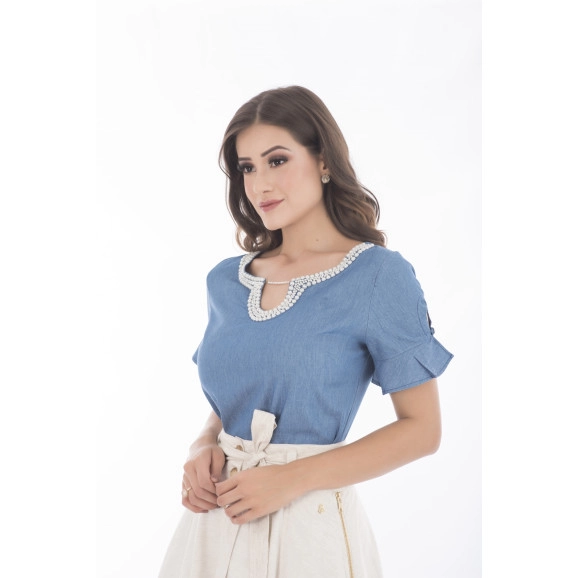Blusa Bordada em Pérolas Via Tolentino
