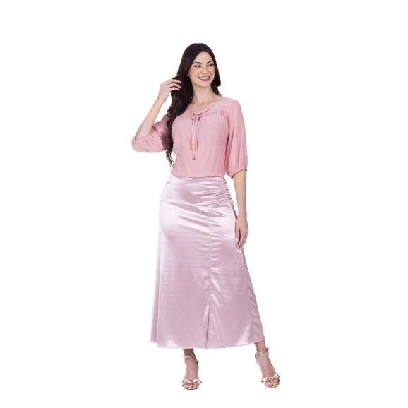 Blusa Camila Em Tecido Plano Rosa Hapuk