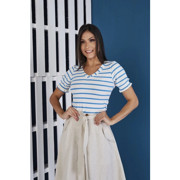Detalhe: blusa canelada, possui elástico nas mangas. Peça linda e prática, para você montar vários looks!