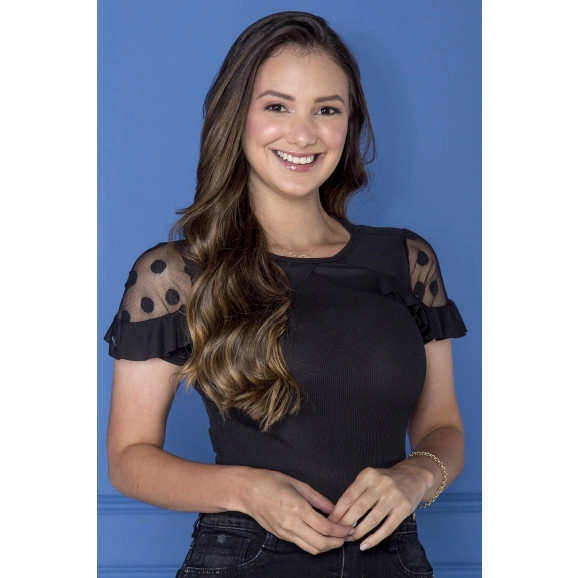 Blusa Canelada Detalhe Tule Preta Tatá Martello