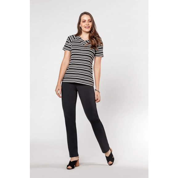Blusa canelada, mega confortável, listrada, cor: preta. Composição: 96% Viscose, 4%Elastano. Para quem não abre mão do conforto, essa é uma ótima opção!