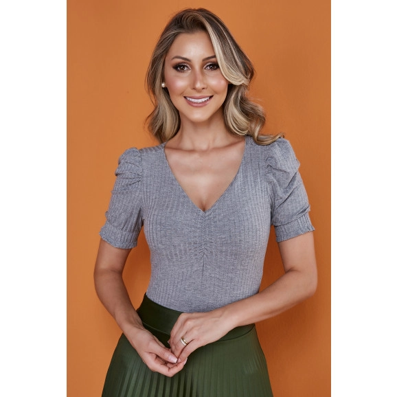 Blusa Canelada Manga Princesa Cinza Tata Martello