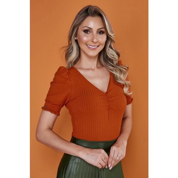 Detalhe: blusa canelada com manga princesa, possui detalhe franzido. Blusa linda e confortável, ideal para correria do dia-a-dia!