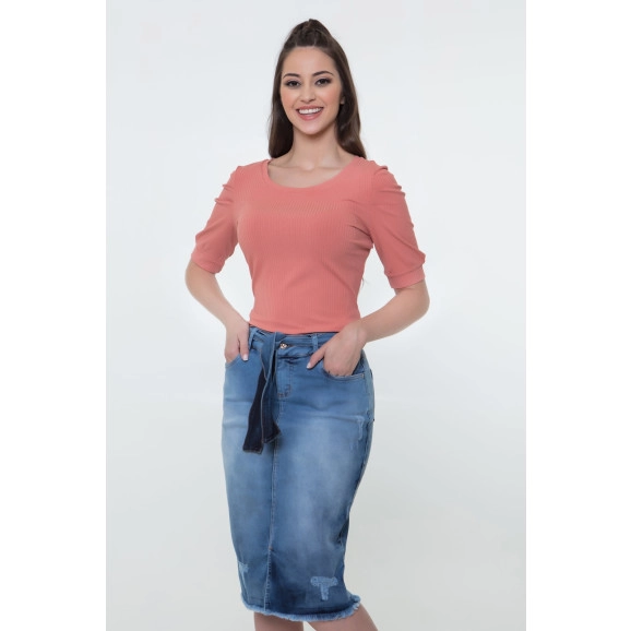 Detalhe: Blusa confeccionada em malha canelada. Peça super versátil, além de ser super fresquinha!