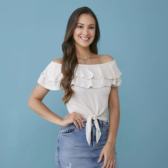 Blusa Ciganinha com Babados Bege Tatá Martello