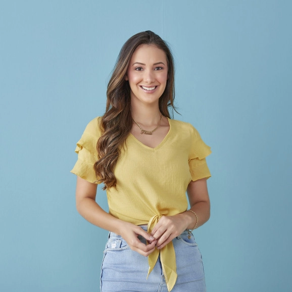 Blusa com Amarração Frontal Amarela Tatá Martello