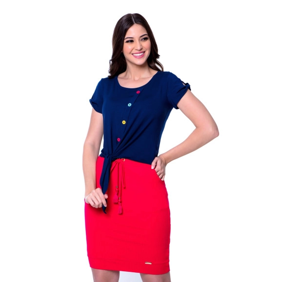 Blusa com Botões Azul Hapuk confeccionada em malha, possui detalhe para amarração na cintura. Composição: 96% Viscose 4% Elastano. Blusa super estilosa e fresquinha.