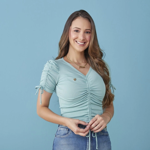 Blusa com Detalhe Drapeado Verde Tatá Martello