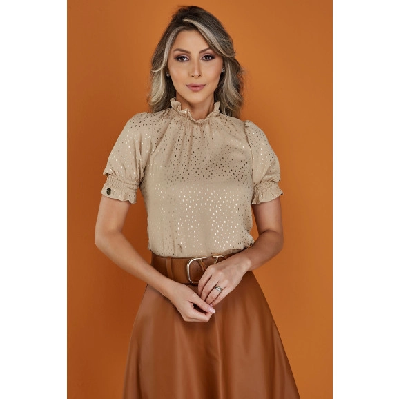 Detalhe: Blusa confeccionada em crepe com brilho, lastex nas mangas, gola alta com elástico. Tecido super levinho e confortável, você ainda pode jogar um blazer por cima, vai ficar incrível!