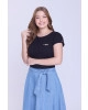 Blusa em malha piquet, decote redondo, bolso funcional com broche removível, mangas curtas e elástico interno barra.