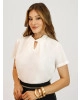 blusa no tecido de viscose com golinha torcida com amarração traseira e vazado triangular. Contém prega no decote.