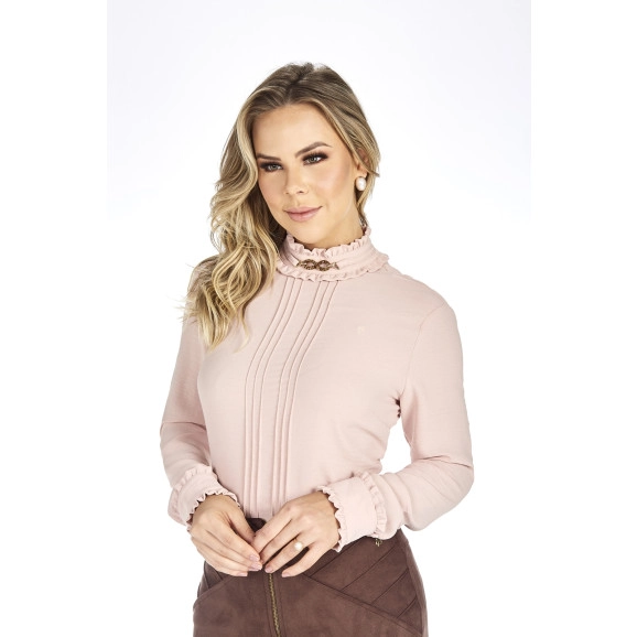 Blusa Detalhe Pregas Rose Via Tolentino, gola alta, manga longa, confeccionada em 100% Poliester. Peça linda, sofisticada, pode ser usada em qualquer ocasião!