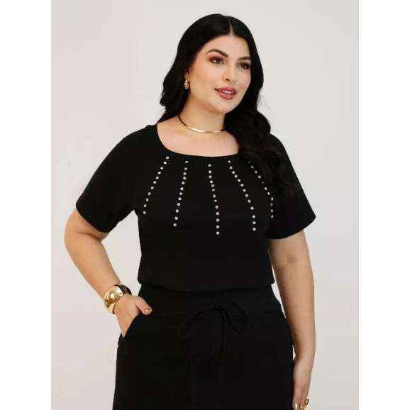 Blusa Erica Em Malha Preta Plus Nitido