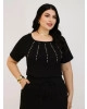 t-SHIRT na malha conforto com debrum no decote redondo cava raglan e detalhe de bordado manual em strass bloco.