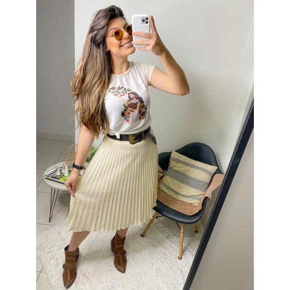 Blusa Estampa Maça Victoria's Princess com detalhe em pedrarias, parte da frente confeccionada em 100% Poliester, verso 96% Viscose 4% Elastano. NÃO ACOMPANHA SAIA! -