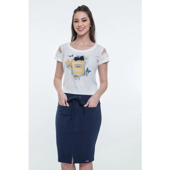 Detalhe: blusa possui linda estampa com detalhe em lacinho, detalhe em tule nas mangas com acabamento em guiper e pérolas. Peça chave no seu guarda-roupa, pode ser usada com saias lisas ou estampadas