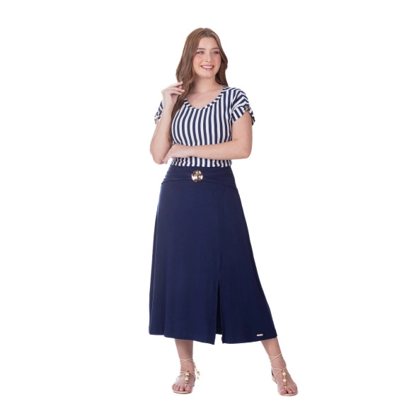 Blusa Maria Em Malha Listrada Azul Hapuk