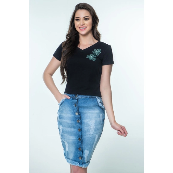 Blusa Girl Bordada Preta Hapuk