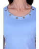 decote redondo com ilhós e mangas