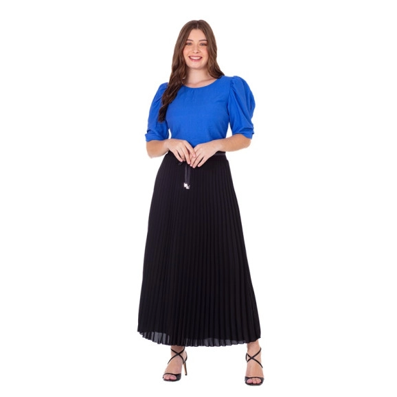 Blusa confeccionada em tecido plano, decote redondo e detalhe em pregas nas mangas.Composição: 88% viscose 12% poliamida.
