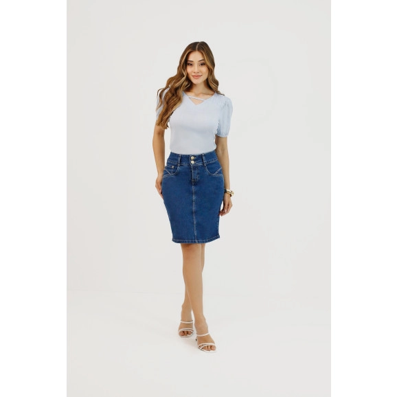 Blusa Jasmin Em Viscolinho Azul Nítido