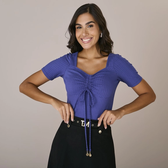 Blusa Katia Em Malha Canelada Azul Tatá Martello