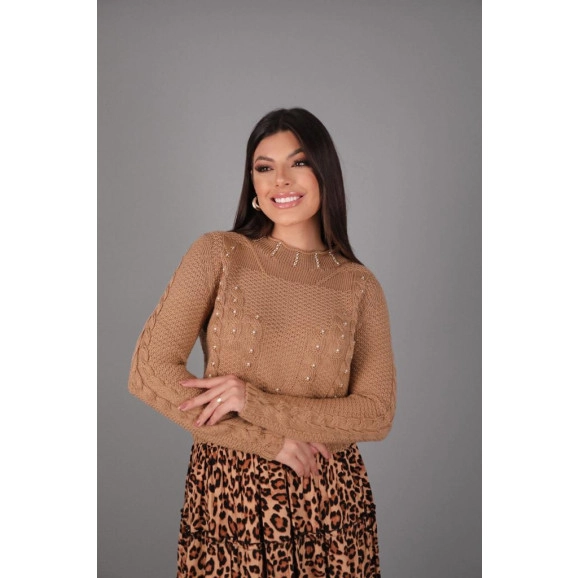 Blusa Lara Tricot, Com Detalhes Em Pedrarias Tranças.
