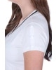 Blusa confeccionada em malha e decote em V com ribana em malha retilínea bicolor.