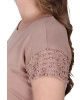 Blusa confeccionada em moletinho, decote redondo, cavas deslocadas, mangas com bordado manual em perolas e barra com cós.