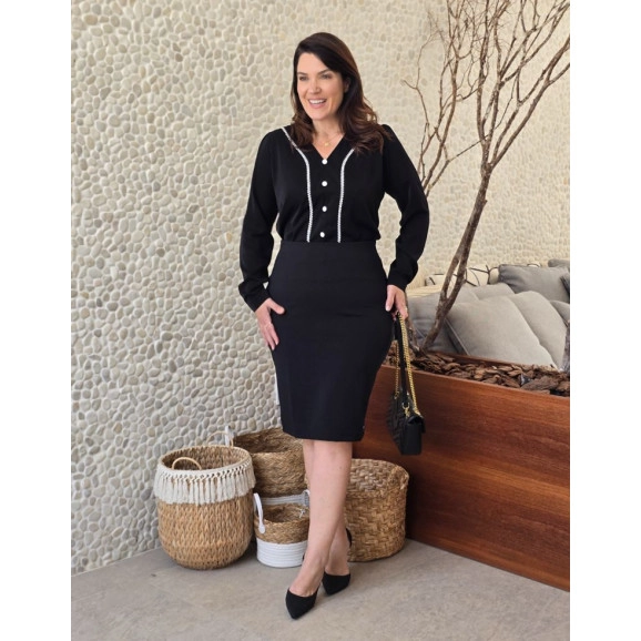 Blusa Luna Em Crepe Preto Maria Amore