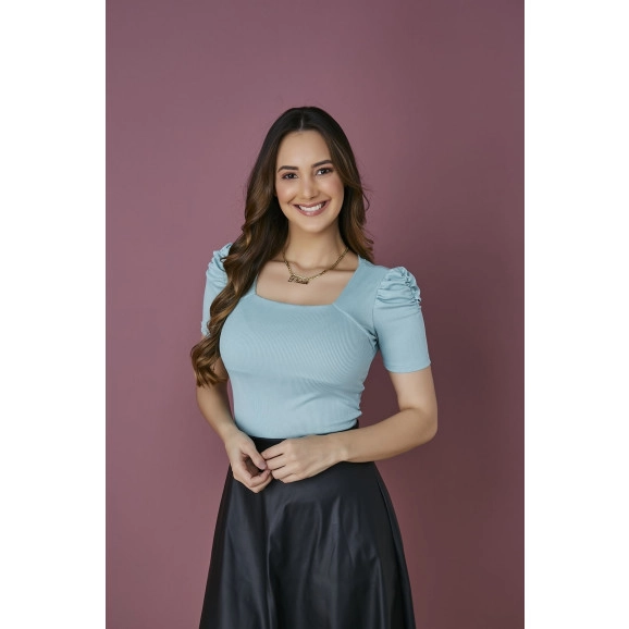 Blusa Malha Canelada Verde Tata Martello, confeccionado na malha canelada, manga princesa curta Composição:96%Poliester 4%Elastano. Blusa super delicada, ideal para looks mais românticos! -