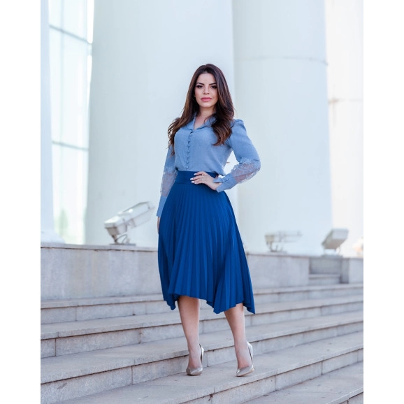 Blusa Manga Longa com Detalhe em Renda Kauly