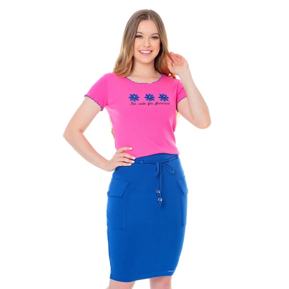 Blusa em malha canelada com detalhe em costura picô colorida, bordado industrial com ponto de luz bordados manualmente. Composição 63% poliéster 33% viscose 4% elastano.