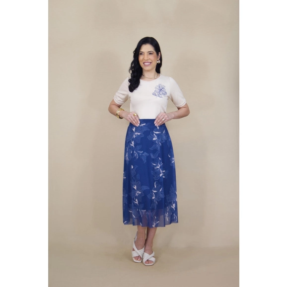 Blusa Moletinho Bordado Azul Hadaza