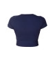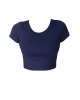 Blusa cropped confeccionada em malha com proteção UV e fácil secagem, decote redondo, mangas curtas e possui bojo removível.