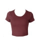 Blusa cropped confeccionada em malha com proteção UV e fácil secagem, decote redondo, mangas curtas e possui bojo removível.