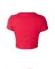 Blusa cropped confeccionada em malha com proteção UV e fácil secagem, decote redondo, mangas curtas e possui bojo removível.