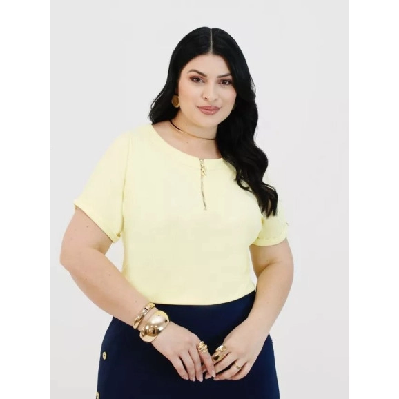 Blusa Paula Em Malha Canelada Amarela Plus Nitido