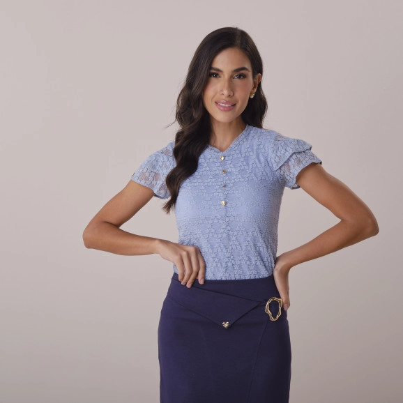 Blusa Silvia Em Renda Chilon Azul Tata Martello