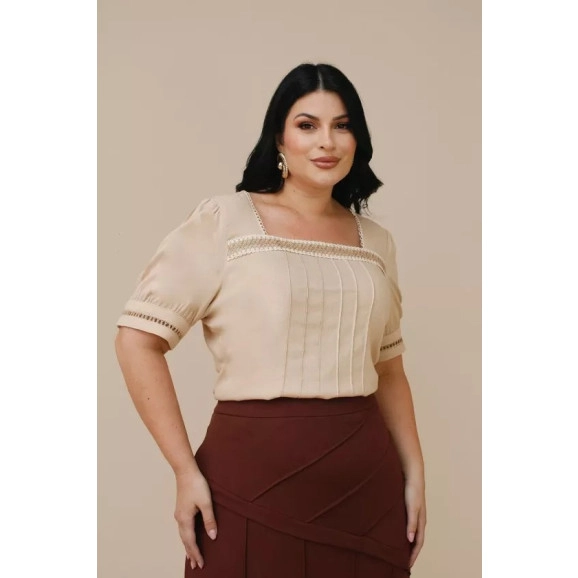 Blusa Tayla Em Viscolinho Bege Plus Nitido