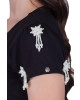 Blusa confeccionada em malha de algodão sustentável, mangas curtas com aplique bordado em pérolas. Blusa 96% algodão 4% elastano