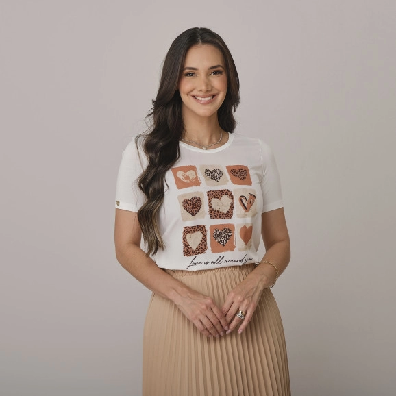 Blusa Yasmin Em Crepe Gloss + Malha Coração Tata Martello