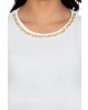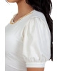 Blusa confeccionada em mix de malhas, decote com bordado manual e mangas com punhos. blusa 92% viscose 8% elastano