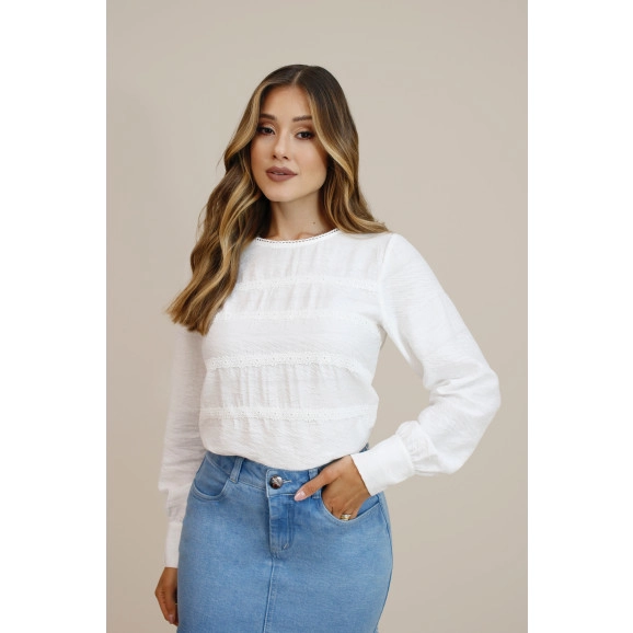 Blusa Zara Em Viscose Com Poliamida Branco Nitido