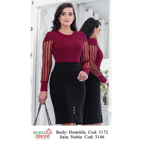 Body Detalhe Tule Vinho Maria Amore