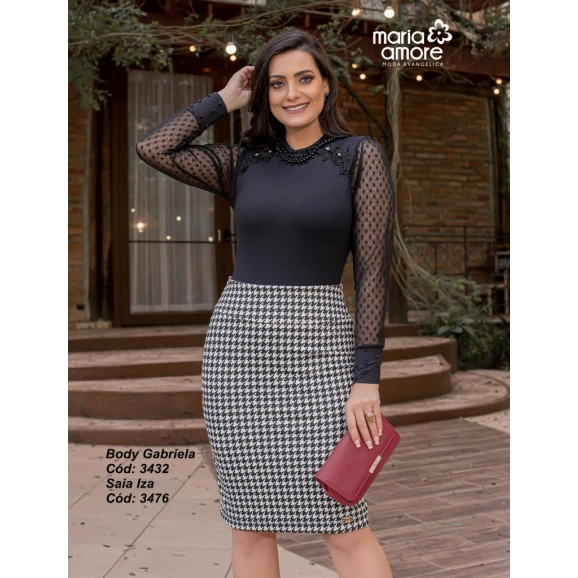 Body preto bordado em pérola, manga tule, detalhe em guiper, O body pra você usar com qualquer saia!